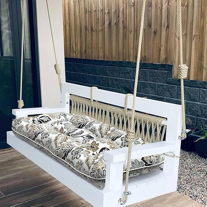 Tufted Bench Cushion for Outdoor Furniture, Patio Swing Cushion 44 x 19 x 5 Inch, Overstuffed Outdoor Chair Cushion for Garden Loveseat Lounge Storage, 1 Pack,Dailey Tan