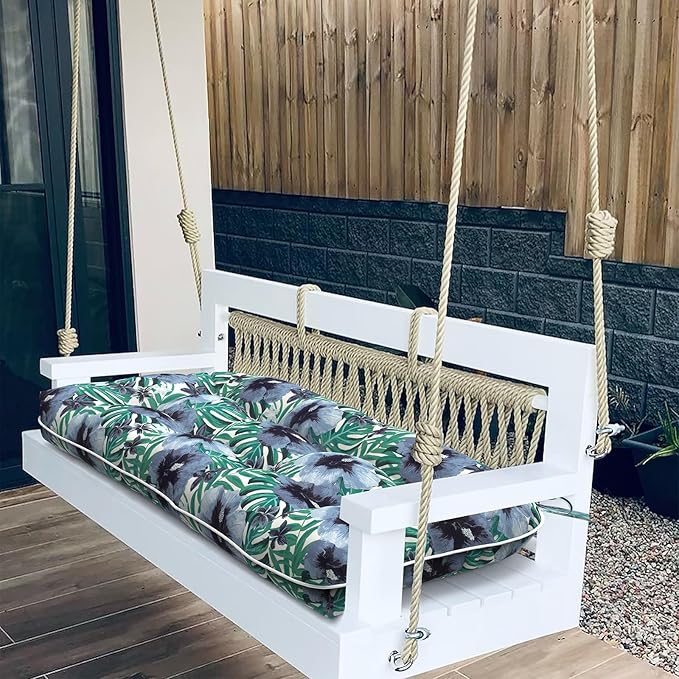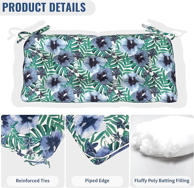 Tufted Bench Cushion for Outdoor Furniture, Patio Swing Cushion 44 x 19 x 5 Inch, Overstuffed Outdoor Chair Cushion for Garden Loveseat Lounge Storage, 1 Pack,Blue Salmone Tropical