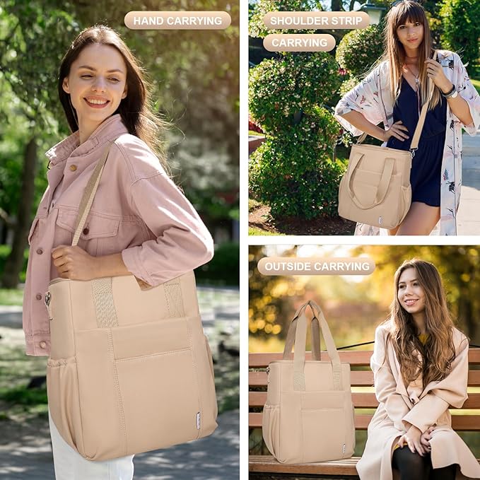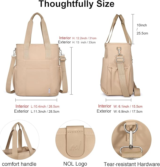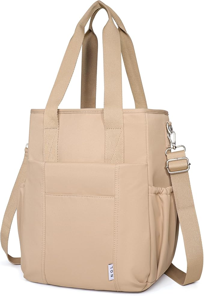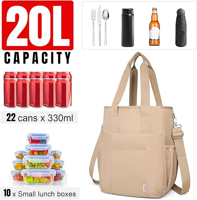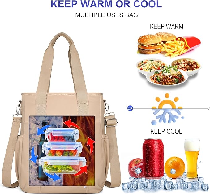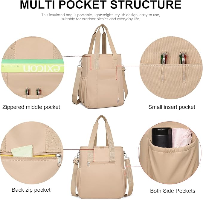 NOL Insulated Lunch Bag for Women, Large Spacious Lunch Tote Bag With Removable Adjustable Shoulder Strap with Multi Pockets,Leakproof Cooler Bag,Lightweight Nylon Waterproof Lunch Box For Work,Khaki