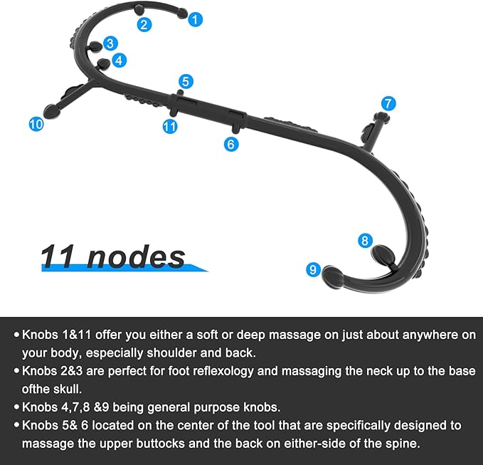 - ✅MULTIPLE MASSAGE POINTS - This highly durable and stable massage wand has 10 massage knobs divided into 3 types - acorn shape for deep tissue, round for gliding over larger muscle groups,and small For use on the lower back.Pinpoints pressure points throughout the body to provide quick relief when pressed on various trigger points or pressure points throughout the body.Christmas gifts.