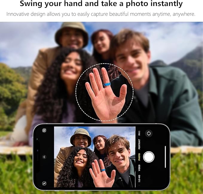 - 【5ATM waterproof & Remote Photo Control】In rainy days or swimming , Don't worry, Waterproof smart ring has 5ATM waterproof rating,After enabling the remote photo function on the app, just shake the finger wearing the ring to take photos remotely.