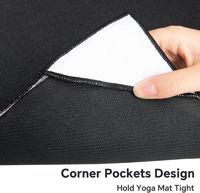 - Corner Pockets & Silicon Spotted Backside: Features 4 corner pockets on the backside, the non slip yoga mat towel helps secure and hold onto the mat firmly. This grip bottom design allows you to focus your mind, body and breath on the yoga practice, without worrying about bunching.