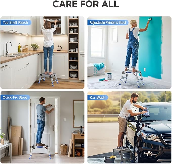 - Versatile Usability: The step stool can be used indoors to reach high objects, outdoors as a seating stool, and also functions as a ladder for tasks such as car washing or painting houses, and more.
