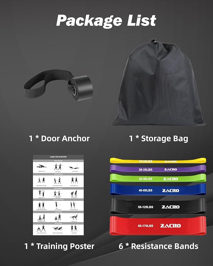 - 【Portable and User-Friendly】: Designed for convenience, our workout bands are compact and lightweight. Complete with a professional exercise door anchor, a training poster and a storage bag, you can easily set up your workout space anywhere in just 60 seconds