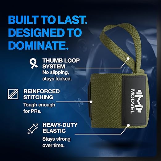 Modvel Adjustable Wrist Wraps for Gym & Lifting – Thick, Breathable Support Straps for Wrist Stability, Comfort & Grip – Ideal for Weight Training, CrossFit & Gym Workouts – Green (2-Pack)