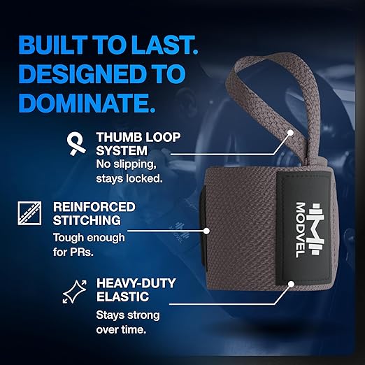 Modvel Adjustable Wrist Wraps for Gym & Lifting – Thick, Breathable Support Straps for Wrist Stability, Comfort & Grip – Ideal for Weight Training, CrossFit & Gym Workouts – Dark Gray (2-Pack)