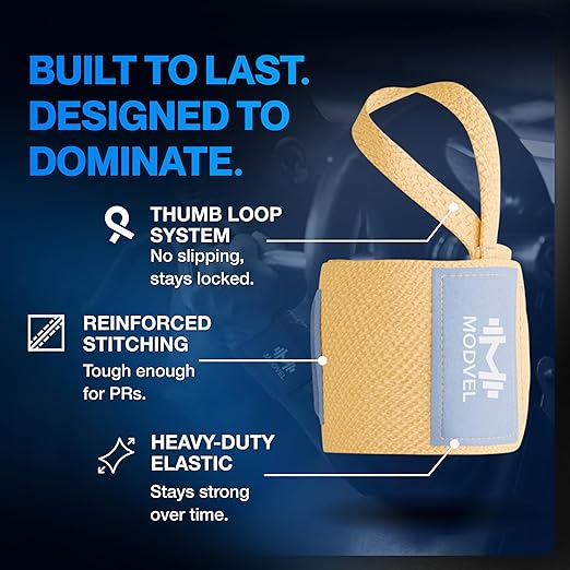 Modvel Adjustable Wrist Wraps for Gym & Lifting – Thick, Breathable Support Straps for Wrist Stability, Comfort & Grip – Ideal for Weight Training, CrossFit & Gym Workouts – Yellow/Sky Blue (2-Pack)