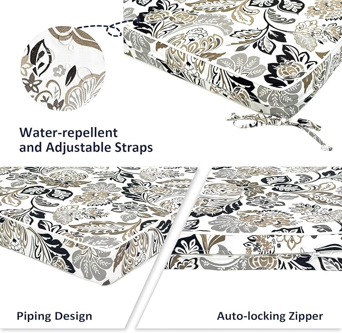- Lasting Quality: The patio furniture cushions are equipped with two adjustable straps on each side, ensuring a snug fit on your bench. It doesn't fade over 1000H sunshine and the fabric guarantees long-lasting vibrancy, making it a perfect addition to your indoor or outdoor space
