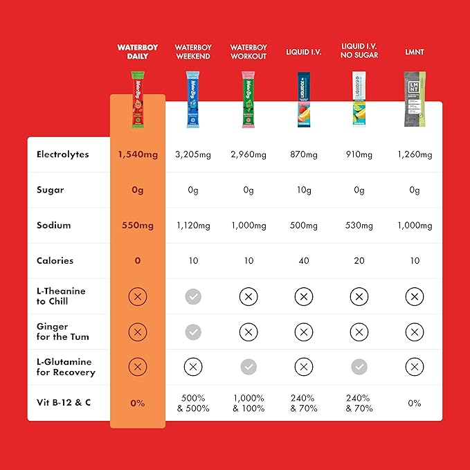 - MADE FOR DAILY HYDRATION: Most electrolyte powders and electrolyte drinks on the market are LOADED with sugar. Waterboy Daily helps you hydrate with no fillers or junk, just clean electrolytes designed for optimal absorption and daily use.