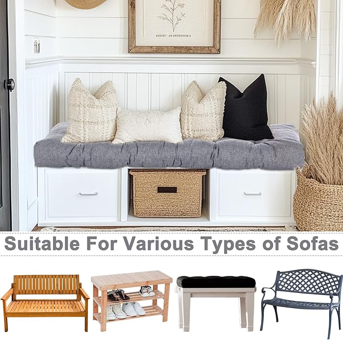 - Water Repellence for Outdoor: made of water resistant fabric, the outdoor bench cushion is durable and weather resistant, dirt & fade proof and no peculiar smell, well sewn and no pilling on the surface; This bench cushions are nice outdoor furniture accessories