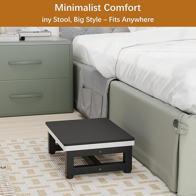 Wooden Step Stools for Adults Kids, Heavy Duty Stepping Stools with 1CM-Thick Anti-Slip Cushion for Bedroom Kitchen Bathroom, Bed Steps for High Bed, Easy to Assemble, 500-LBS Capacity, Black&Grey