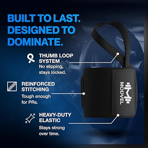 Modvel Adjustable Wrist Wraps for Gym & Lifting – Thick, Breathable Support Straps for Wrist Stability, Comfort & Grip – Ideal for Weight Training, CrossFit & Gym Workouts – Black (2-Pack)