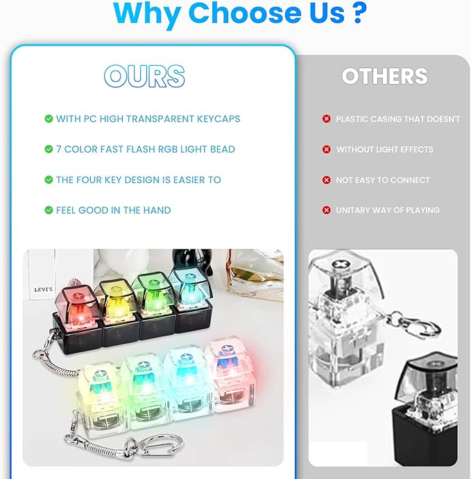 - Quiet & Loud keyboard Fidget: The keyboard clicker is perfect for playing, you can use it to relieve your emotions at work or to kill time in general and good for releasing the stress in your brain. Keychain fidget clicker makes your hands more flexible, and its surface feels very smooth to the touch effect on your fingertips, helping to relax your mind and body,eliminate stress and anxiety! The black 4 key toy is quiet fidget toys.