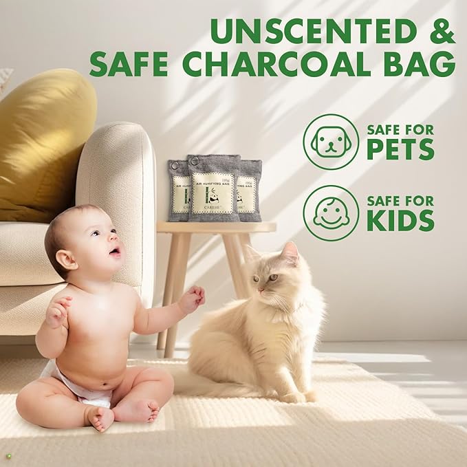 - Safe and Chemical-Free - Made from 100% bamboo charcoal, these air purifying bags are non-toxic and safe for families and pets, providing a clean environment without harmful chemicals.