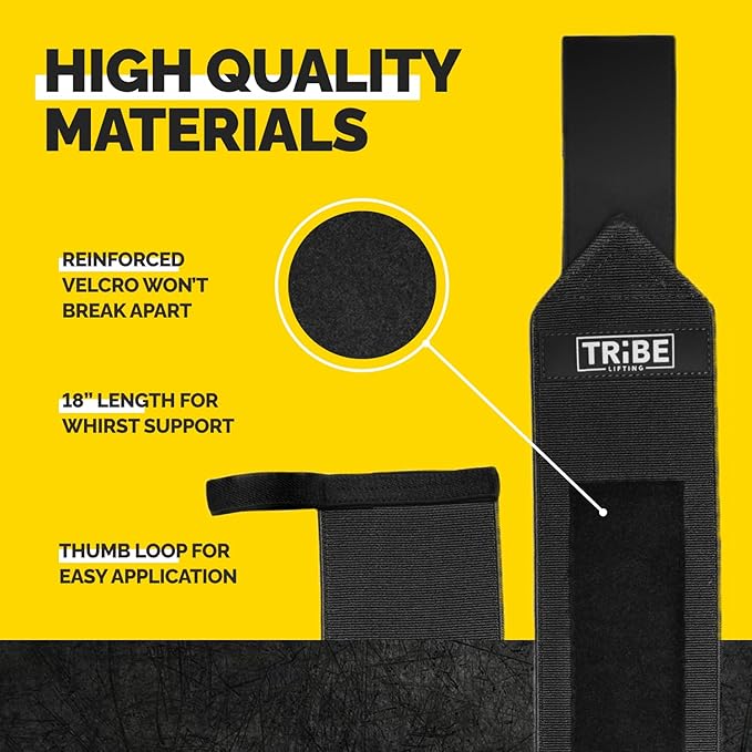 - [Premium Quality] - Tribe Lifting Wrist Wraps are 18" long, providing extra support for your wrists during heavy lifting. Made from the highest quality materials, these wraps are designed to last