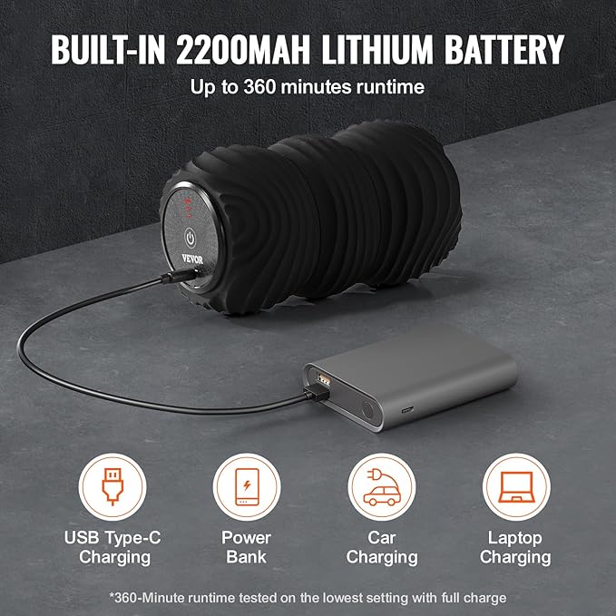 - Convenient USB Charging: This silicone vibrating massage ball offers up to 300 minutes of use on the lowest setting, thanks to its 2200mAh battery. Recharge with a USB Type-C cable using any power bank, laptop, or wall outlet anytime, anywhere.