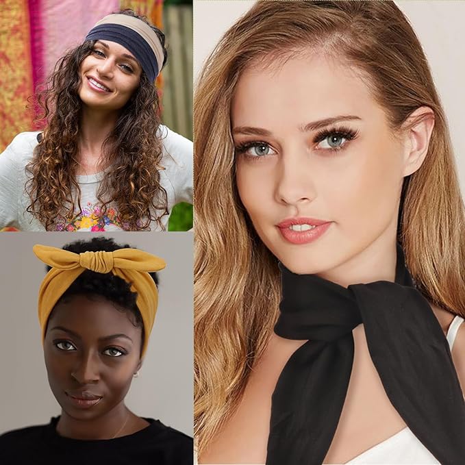 - 【Amazingly Soft Headband】Made of comfy stretch cotton and spandex, these women fashion headbands are gentle to your hair and pain free all day long. These hairbands are so comfortable that you'll forget you're wearing it. If you need to wear a hair wrap that feels snug, this is the best headband for you.