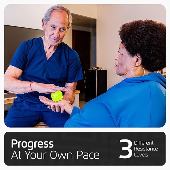 - 3-Piece Set: Ideal for anyone who has pain, limited dexterity or an injury, this set includes three silicone balls with flat nodules at different resistance levels to offer a complete range – from gentle touch to deep stimulation.