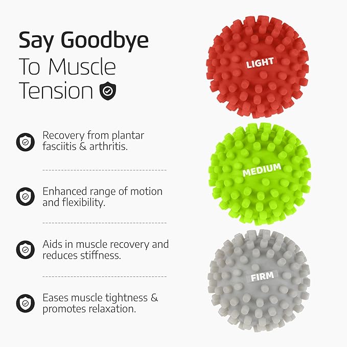 Logest 3-Piece Set Foot Massage Ball - for Trigger Point Therapy, Injury Rehabilitation & Deep Tissue Massage Balls - Prevent Stiffness & Improve Strength - Silicon Spike Ball for Foot and Back