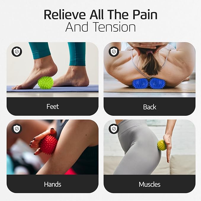 - Convenient Carry Bag: All the Spiky Massage Ball fit inside the included carrying bag, furnished with a drawstring for safe storage. Use them at home, the gym, work or when you’re away to massage your feet, back, hands, muscles, fascia and trigger points.