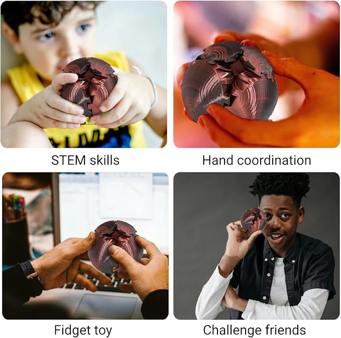 - 【Versatile for All Ages】The 3D printed gear ball spin ball cube fidget toy caters to people of all age groups, including children and adults. The Gear sphere toy serves as a stress relief tool and an entertaining toy, offering benefits to users across the board.