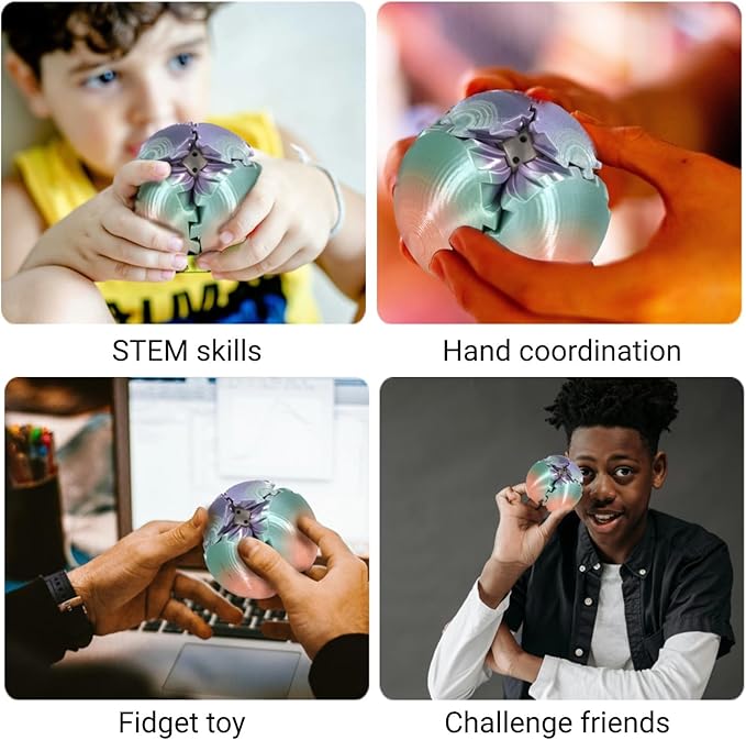 - 【Versatile for All Ages】The 3D printed gear ball spin ball cube fidget toy caters to people of all age groups, including children and adults. The Gear sphere toy serves as a stress relief tool and an entertaining toy, offering benefits to users across the board.