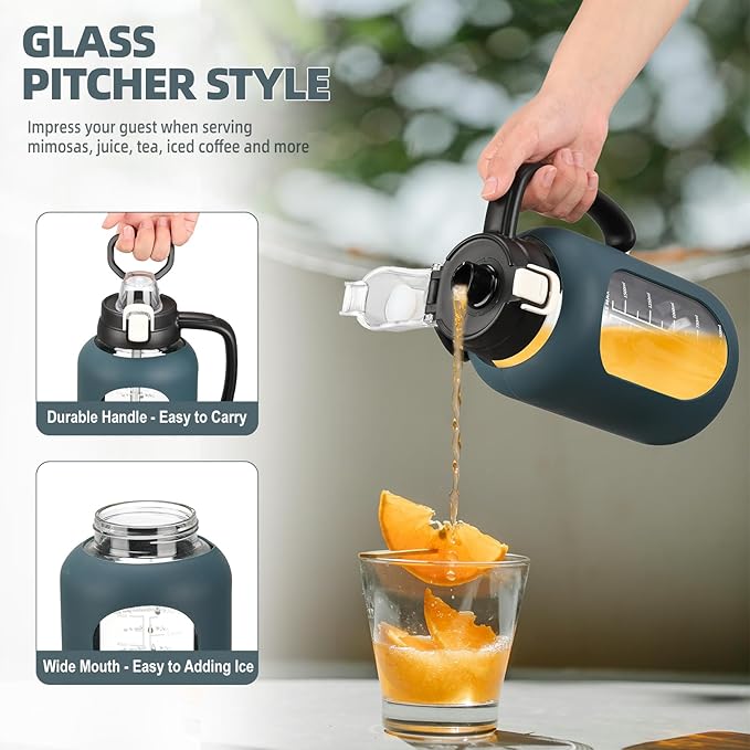 - BPA-free Borosilicate Glass: Our half gallon water bottle made of selected and thicker borosilicate glass, is more heat resistant and healthy. Glass bottle can retain the origin taste of the water or beverages without any chemical substances