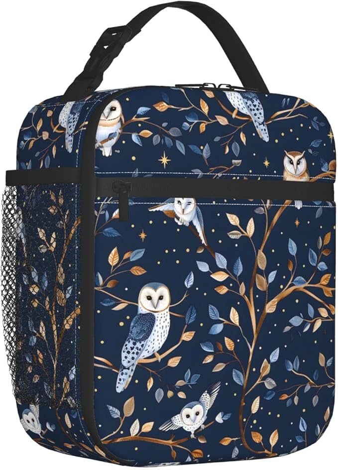 Cool Owl Lunch Box for Kids,Bird Insulated Bag for Student,Animal Reusable Thermal Insulation Cooler Tote Bags for School Work Picnic Camping Outdoor Gifts (Nighttime Owl Dark Blue)
