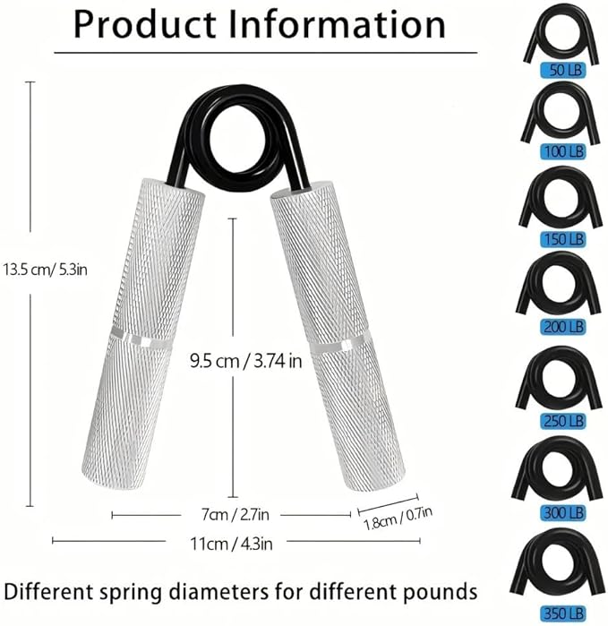 - Complete Finger Exerciser & Hand Strengthener Package: 7Pack 50+100+150+200+250+300+350LB Grip Strength Trainer gripper (50-350 lbs), Alternating the use of these items can fully exercise the strength and flexibility of the fingers, hands, Metal Hand Grip Set, Available in 7 different sets to meet everyone’s needs.