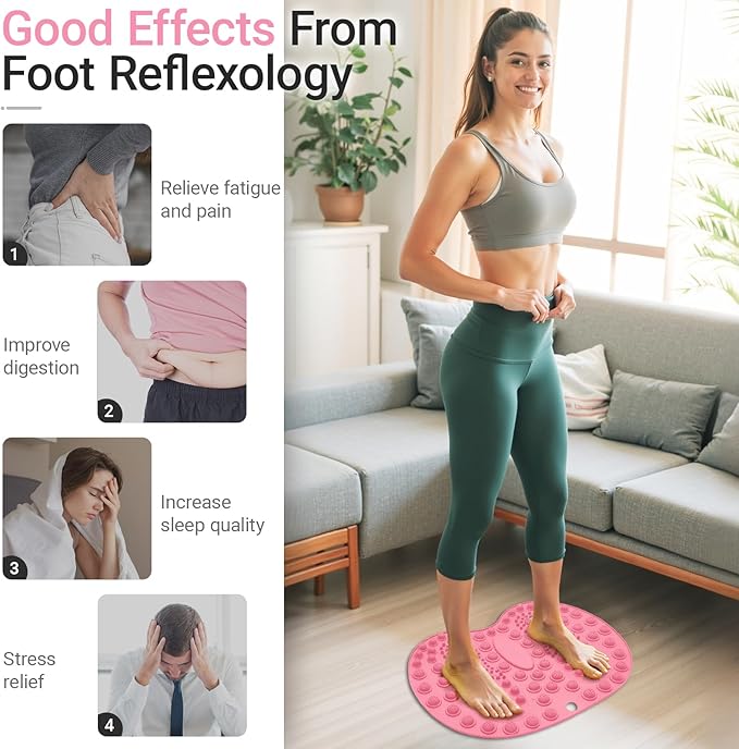 - 【Foot-shape Reflexology Mat with Magnetic Therapy】Compared with other foot massage mats, the unique built-in foot-shaped massage bumps to fit in corresponding acupoints and increase massage effectiveness significantly. Four enlarged magnetic points stimulate the four main acupoints in your feet to accelerate natural healing responses and benefits.