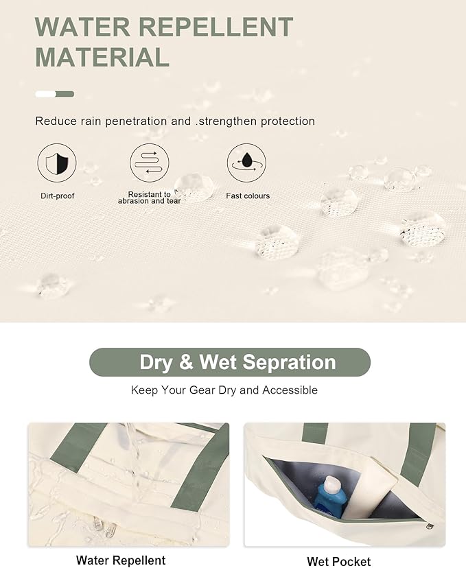 Gym Bag for Women Duffle Bag with Shoe Compartment Yoga Mat Bag Sports Workout Bag Weekend Overnight Bag, Beige Green