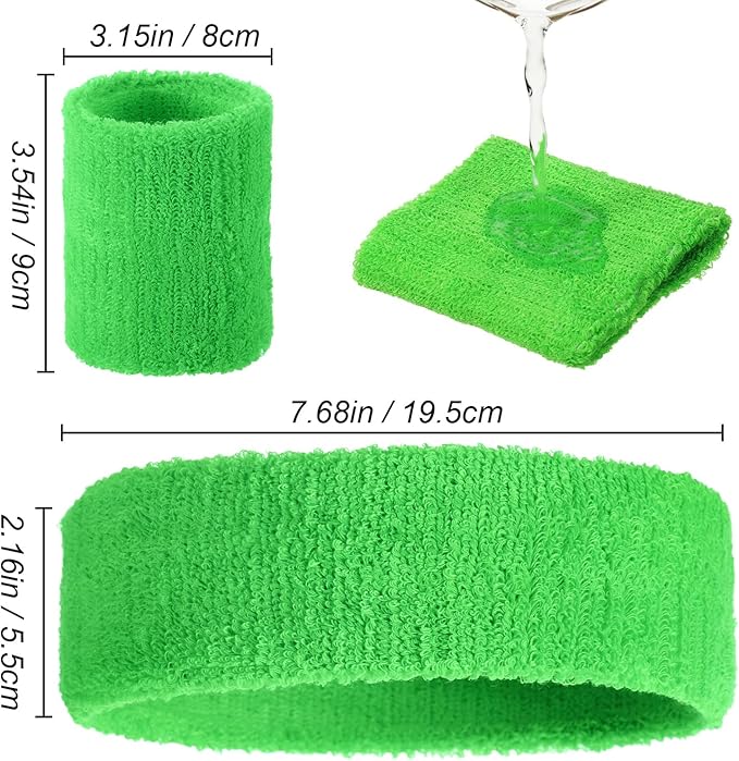- Good Sweat Absorption: these absorbent headbands and towel wristbands would not easily slip off your head and wrist once you put them on; With good sweat absorption, the headbands and wristbands can help absorb your sweat and keep you fresh; The headbands and wristbands are flexible and they can accommodate different sizes of head and wrist, able to meet the needs of most people