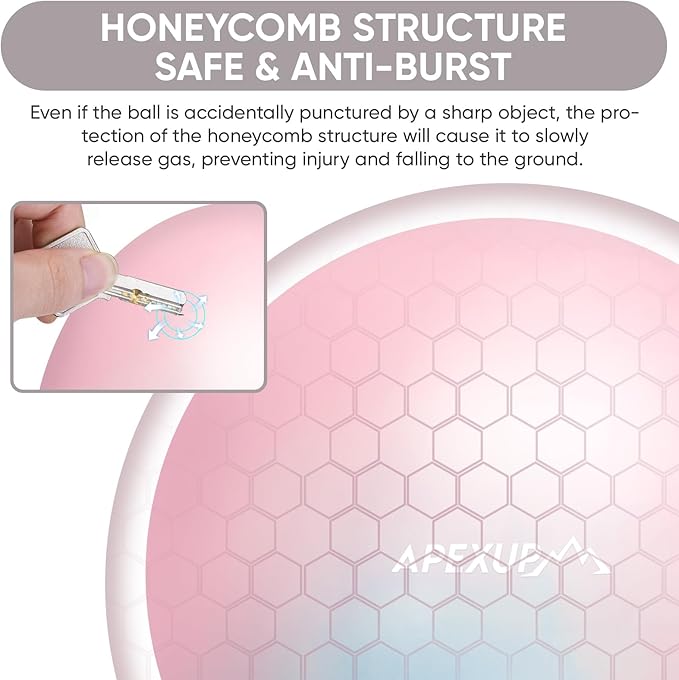 - [SAFE AND ANTI BURST] APEXUP Exercise ball is made of high-quality PVC material, which meets stringent safety standards. It's non-toxic, odorless, and free from harmful heavy metals. With an anti-burst honeycomb structure, it ensures durability and safety during your workouts