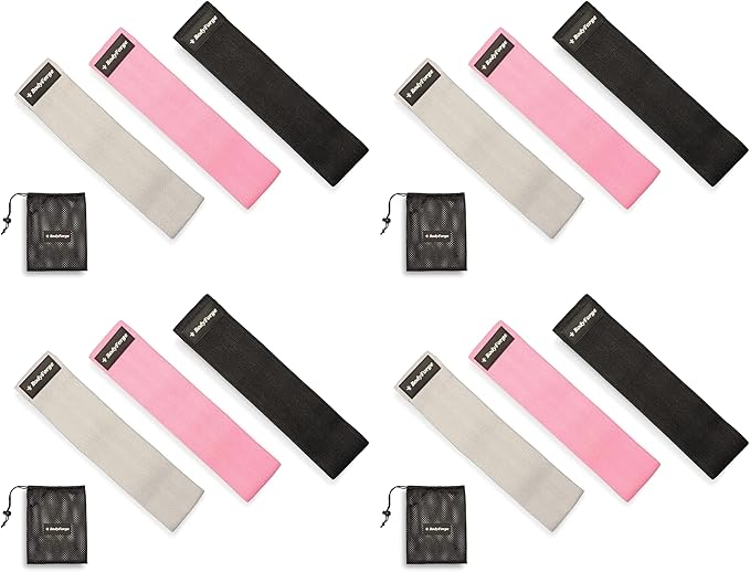 - PACKAGE: Includes 3 fabric exercise loop bands with color-coded resistance levels and a portable mesh carry bag.