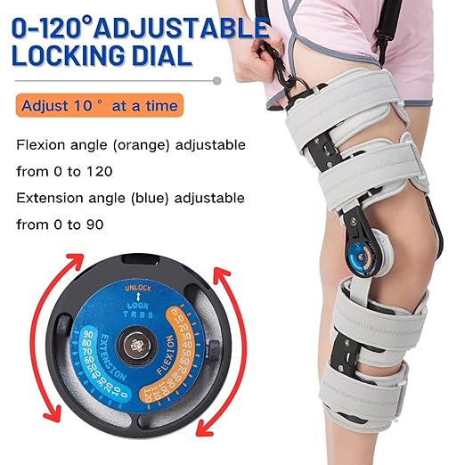 - Customizable Range of Motion: The rom knee immobilizer brace offers a customizable range of motion with bilateral flexion and extension angles adjustable between 0°-120°. This feature allows for precise adjustments that cater to your individual rehabilitation needs, promoting effective recovery.