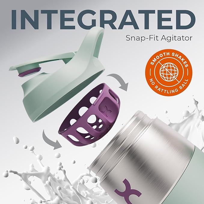 - SNAP-FIT AGITATOR – SMOOTH, CLUMP-FREE SHAKES – Say goodbye to noisy shaker balls. Our built-in snap-fit agitator delivers silky shakes and smoothies, blending supplements, greens, and powders with ease.