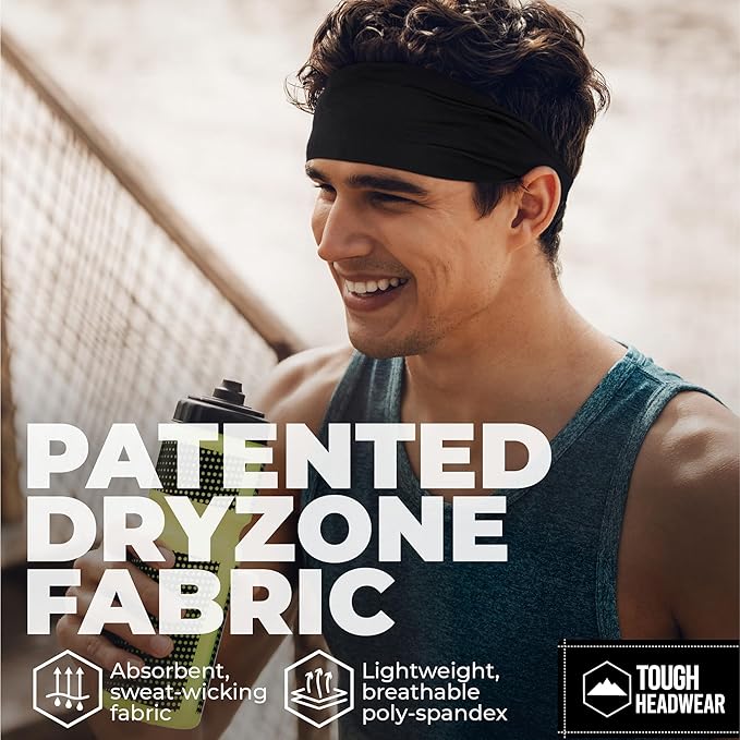 Tough Headwear Sport Headbands for Men - Workout Headbands for Women - Running Headband -Tennis Athletic Sweatband