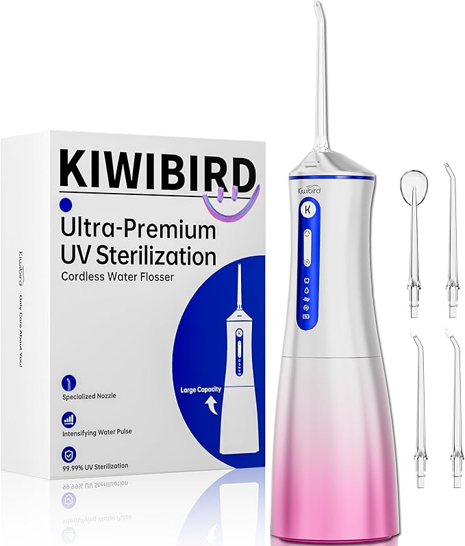 - Advanced 360° UV-C Sanitization for Enhanced Hygiene This water flosser features UV-C sanitization technology that enhances the cleanliness of its components, including the tank, pipes, and nozzles. A smart 90-second timer ensures effective operation, making it a standout in oral care.