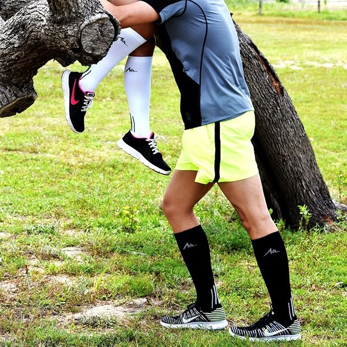 - 【IDEAL COMPRESSION SOCKS FOR ALL OCCASIONS】Our compression socks cater to a diverse range of needs from running nursing and traveling to sports like volleyball and basketball They also provide support for medical professionals pregnant women and individuals seeking comfort during travel or maternity With high-performance features our socks offer support and relief for both men and women across various occasions