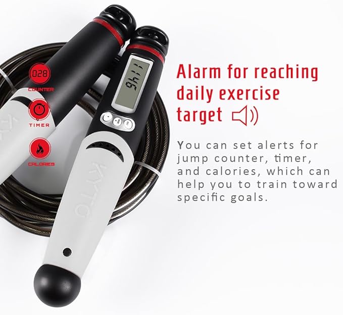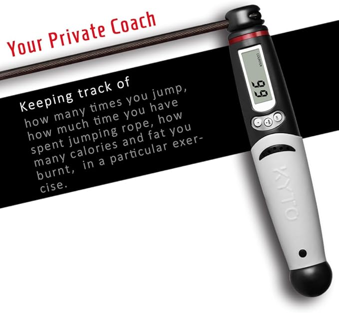 - 【Jump Rope with Counter】 The KYTO Jump Rope with Counter provides the most convenient cardio workout with precise tracking to see real-time counts of timers, calories, and jumps, making it easy to achieve your daily fitness goals.
