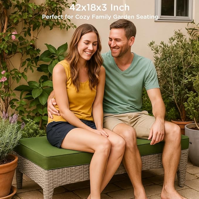 Codi Outdoor Bench Cushion 42 inch, Double Waterproof Patio Furniture Cushions Replacement for Swing, Porch, Couch, 42x18x3'', Green