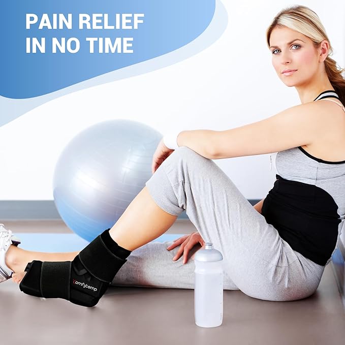 Comfytemp Large Ankle Foot Ice Pack Wrap for Plantar Fasciitis Relief, Feet Brace for Sprained Ankle, Heel Spur, Swelling, Tendonitis, Pain, Hot & Cold Therapy, Surgery Get Well Gift, 1 Pack (Black)