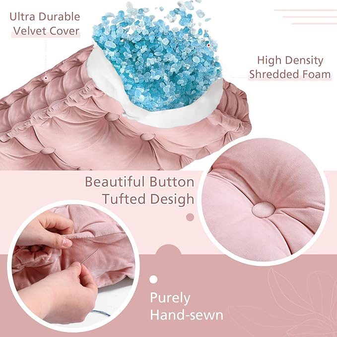 Bench Cushions for Indoor Furniture 42x16 in Velvet Kitchen Dining Piano Window Seat Cushion, Tufted Patio Porch Swing Thicken Bench Pad Memory Foam(Pink)