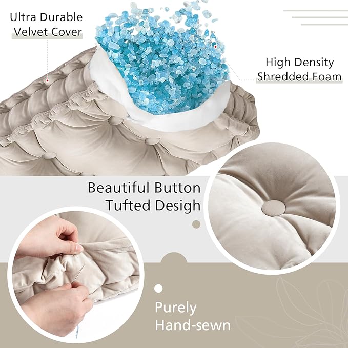 - Beautiful Tufted Button: this bench pillow cushion is designed with tufted buttons and velvet, look more classy and special, not only provides a comfortable seating area that feels soft and smooth against the skin, but prevent the internal fill deformation of the custom bench cushions indoor
