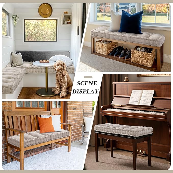 - Versatile for Most: this bench seat cushion can be applied as bay window bench, sofa cushion, floor cushions, floor pillow, piano cushion, breakfast nook cushions, entrance cushion and others; Also ideal for various settings, such as patio bench, garden bench, or even indoor seating, which can seamlessly with different furniture styles