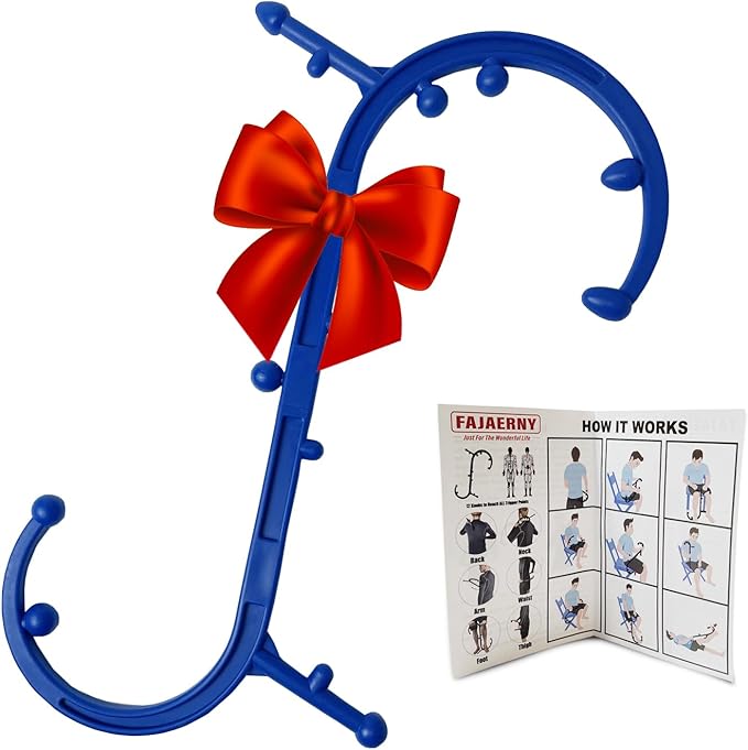Trigger Point Massager - Deep Tissue Massage Tool for Muscle Knot Pain Relief (Back, Neck, Shoulder, Legs & Feet), Handheld Self Massage Cane with S-Shaped Dual-Section Design(Blue)