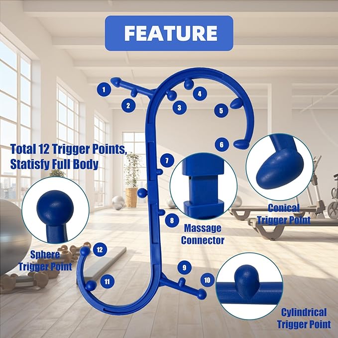 - 【12 Trigger Points, Multi Purpose】The massager has a total of 12 trigger points, including 3 different shapes, which can achieve different massage intensities. Combining the S-shaped curve shape, 12 trigger points can reach various parts such as the neck, back, shoulders, waist, legs, feet, etc.