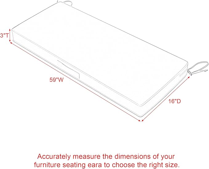 - Size Selection - Including 1 bench cushion measuring 59" W x 16" D x 3" T.( The size description is only for the cushion size, accurately measuring the dimensions of your furniture's seating area in advance, make sure the cushion size fits your furniture ).