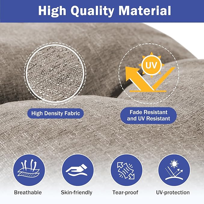 - 【Breathable Surface And Non-slip Bottom】Our outdoor chair cushion is the perfect way to relax. It is made of polyester fabric that is breathable, durable and skin-friendly.Otherwise, the bottom of the outdoor cushion is non-slip fabric, so it won't move around on your chair.