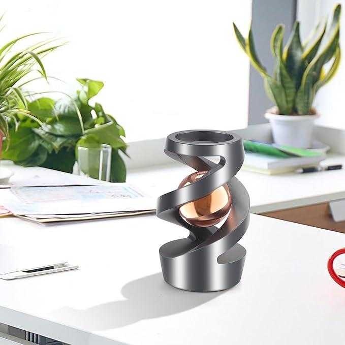 - [ Fine Workmanship ] This kinetic desk fidget toy is well made of metal, fine workmanship make it round and smooth, even finish on the paint job and the chrome ball finish looks great. Nice fabrication on the solid aluminum spiral cage and base.With a simple and elegant design, the desk toy is thoughtful and meticulous product design